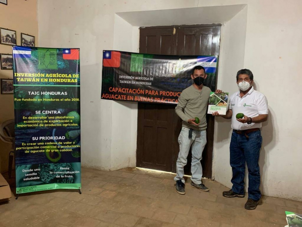2020年10月29日宏都拉斯共和國農牧部(SAG)Mauricio Guevara部長與臺農投資公司宏都拉斯子公司方金國總經理在臺灣大使溫曜禎大使的見證下,簽訂合約,共同推動酪梨農民訓練班。為強化宏都拉斯酪梨生產品質與採後處理,聘請專業講師深入在地酪梨產區,直接指導農民田間栽培管理技術、酪梨採收與採後處理知識。透過陪伴式的指導,在農民的酪梨園實地操作,以最直接的強化宏都拉斯酪梨品質,為產業鏈建構打下基礎。