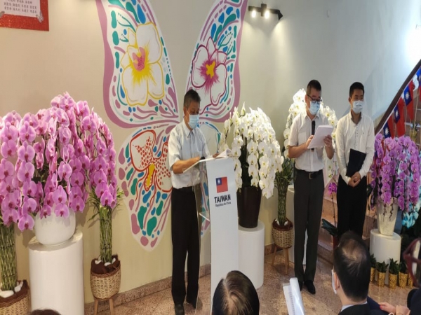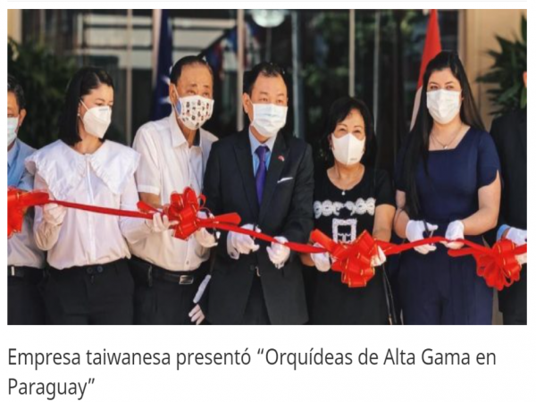 開幕典禮很榮幸邀請到駐中華民國駐巴拉圭韓大使志正為開幕活動致詞,並請大使擔任代表致贈蝴蝶蘭予農牧部Bettina次長。接著曾總經理邀請韓大使、農牧部次長Bettina Aguilera、推廣司司司長Geraldo Rojas、巴拉圭花卉協會理事長Roberto Lopez、曹僑務委員水勝、中華會館古理事長一同共襄盛舉為開幕剪彩,也點燃未來巴拉圭蝴蝶蘭產業的投資契機。